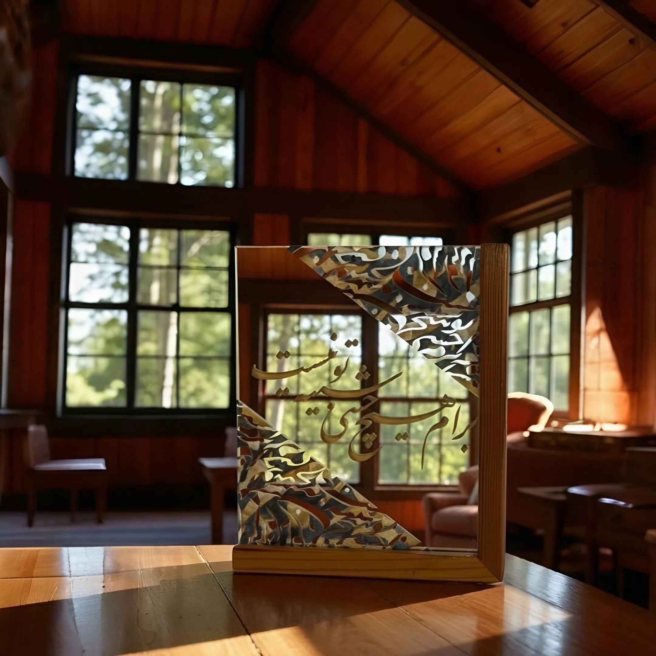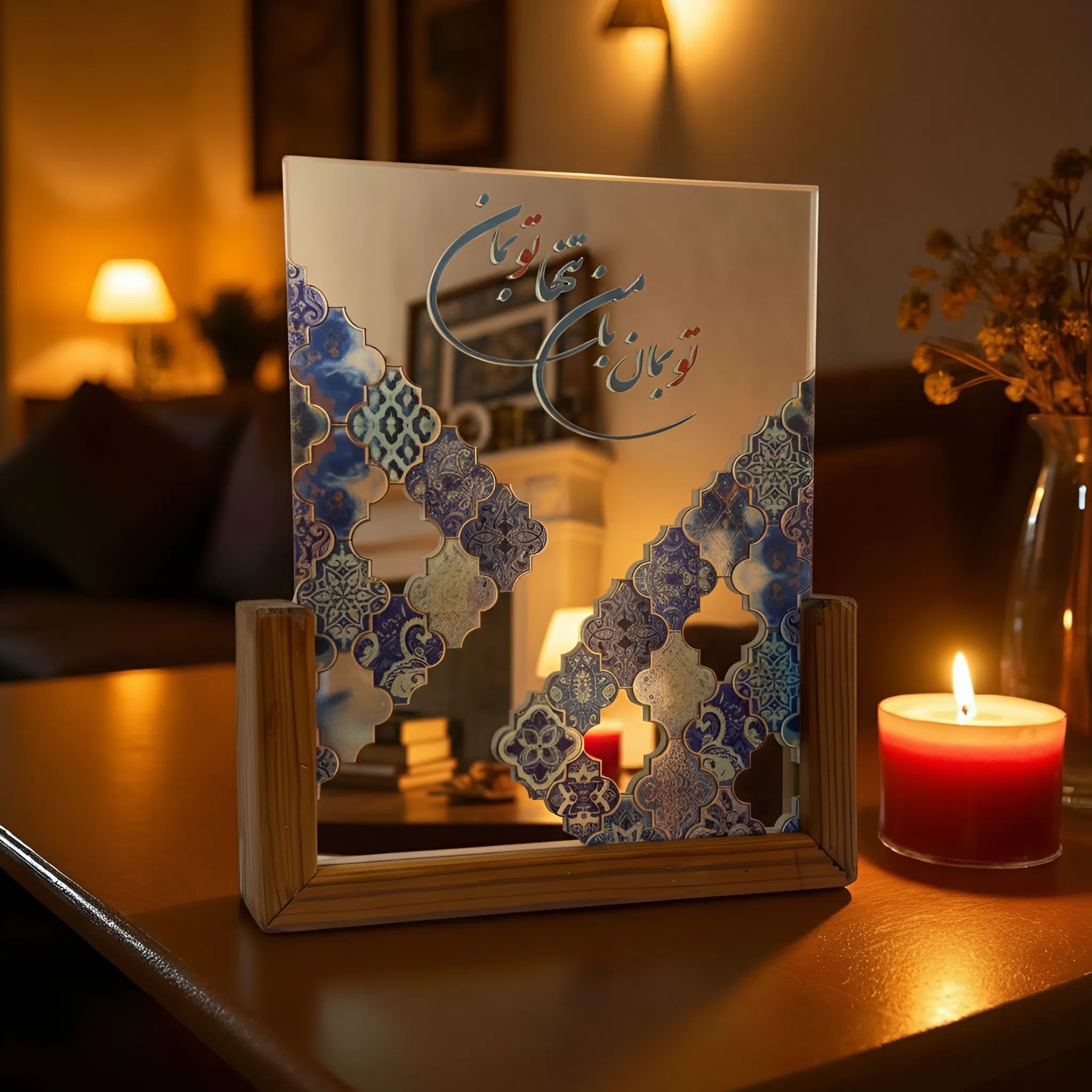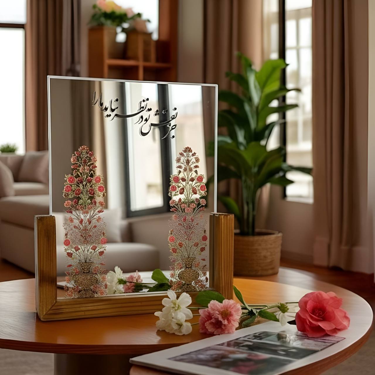 آینه دکوری پایه چوبی رونیکا مدل U بزرگ طرح ای به تنم جان همه تو