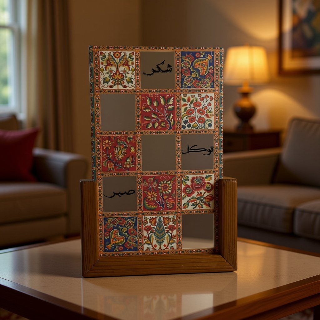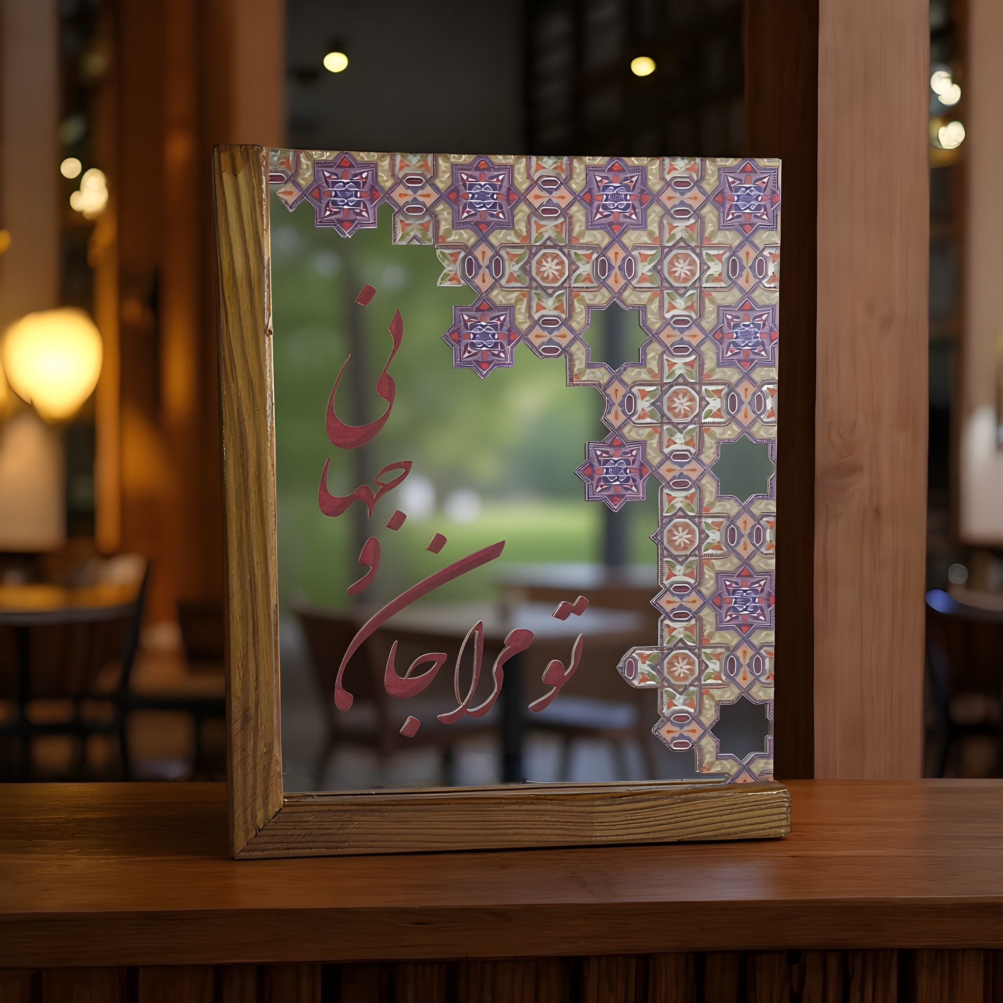 آینه دکوری پایه چوبی رونیکا مدل U کوچک طرح شکر،صبر،توکل