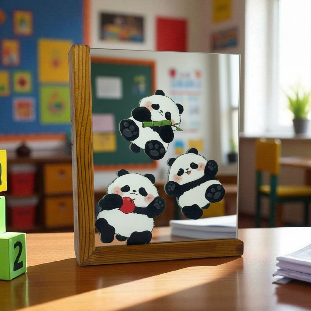 آینه دکوری پایه چوبی رونیکا مدل U کوچک طرح پاندا نقاش