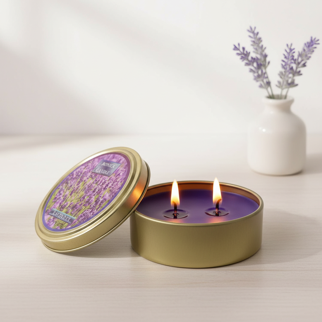 شمع معطر رونیکا مدل فلزی کوچک رایحه LAVENDER (لوندر)