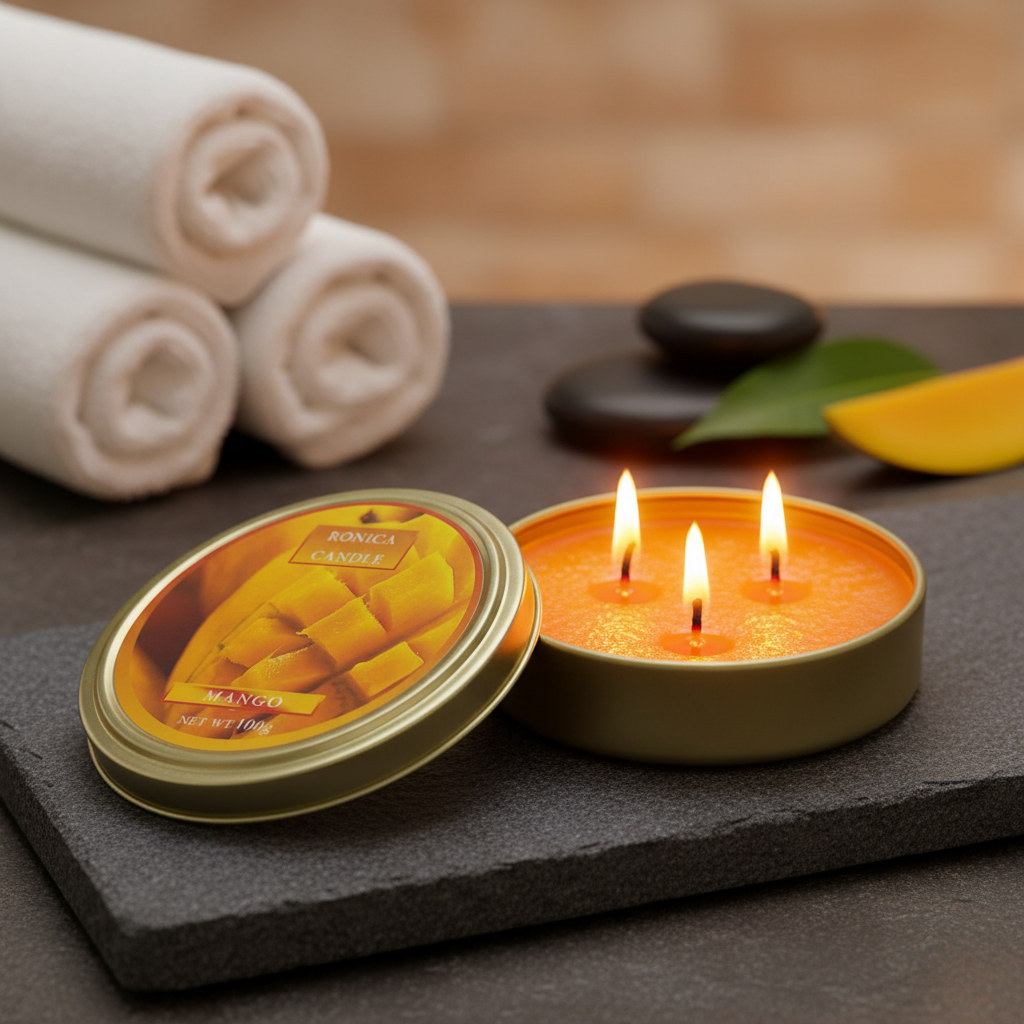 شمع معطر رونیکا مدل فلزی کوچک رایحه MAMGO (انبه)