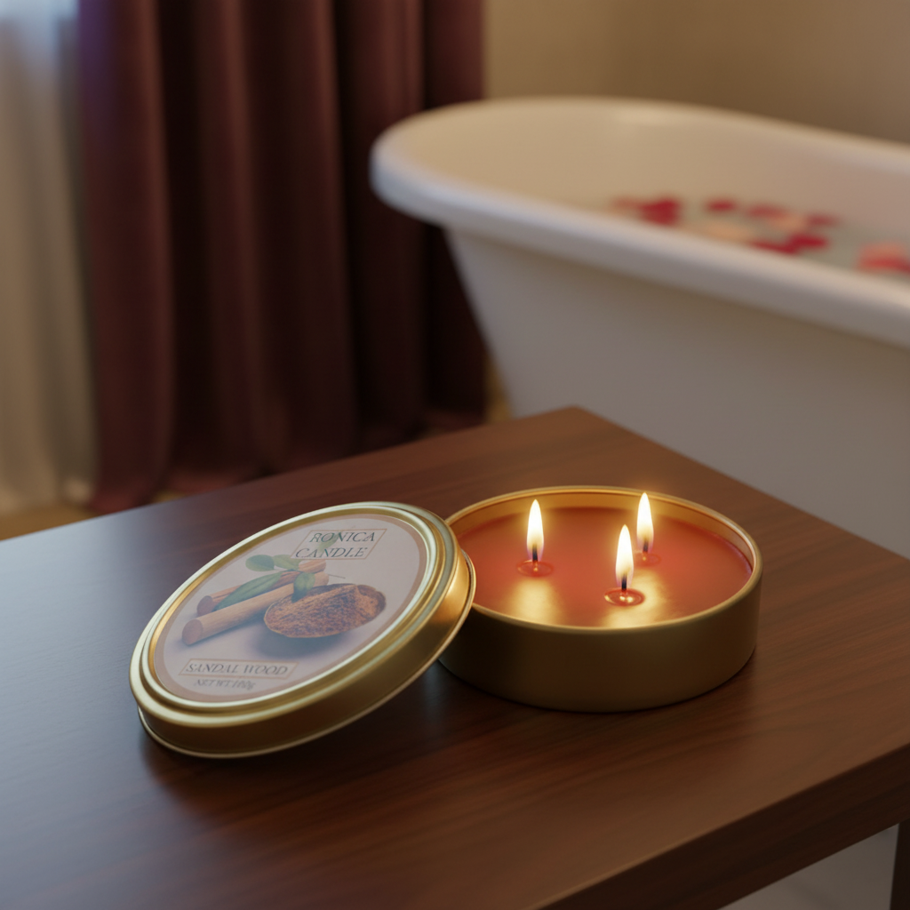 شمع معطر رونیکا مدل فلزی کوچک رایحه SANDAL WOOD (صندل)